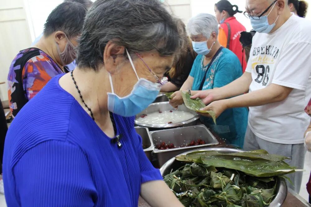 活动当天,老人们都早早的来到了活动现场,每个人脸上洋溢着幸福的笑容。大家和老人们一起做五彩线、包饺子、包粽子。有的老人虽然年龄已经很大,行动也不是很方便,但是也和大家一起兴致勃勃参与进来。